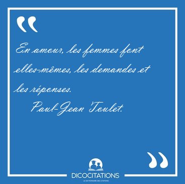 ![En amour, les femmes font elles-mêmes, les demandes et les [...] - Paul-Jean Toulet... En amour, les femmes font elles-mêmes, les demandes et les [...] - Paul-Jean Toulet...](/imagescitations/En_amour_les_femmes_font_elles-memes_les_demandes_et_les_-_Paul-Jean_Toulet-92664.jpg)