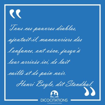 ![Tous ces pauvres diables, ajoutait-il, manouvriers dès [...] - Henri Beyle, dit Stendhal... Tous ces pauvres diables, ajoutait-il, manouvriers dès [...] - Henri Beyle, dit Stendhal...](/imagescitations/Tous_ces_pauvres_diables_ajoutait-il_manouvriers_des_-_Henri_Beyle_dit_Stendhal-92836.jpg)