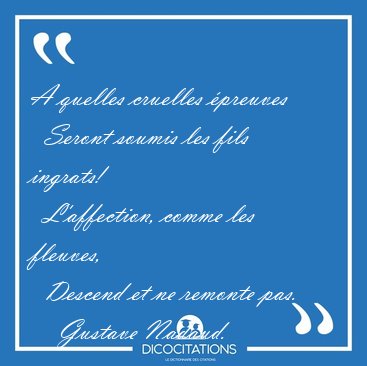 ![A quelles cruelles épreuves Seront soumis les fils ingrats! [...] - Gustave Nadaud... A quelles cruelles épreuves Seront soumis les fils ingrats! [...] - Gustave Nadaud...](/imagescitations/A_quelles_cruelles_epreuves_Seront_soumis_les_fils_ingrats_-_Gustave_Nadaud-94500.jpg)