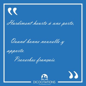 ![Hardiment heurte à une porte, Quand bonne nouvelle y [...] - Proverbes français... Hardiment heurte à une porte, Quand bonne nouvelle y [...] - Proverbes français...](/imagescitations/Hardiment_heurte_a_une_porte_Quand_bonne_nouvelle_y_-_Proverbes_francais-94548.jpg)