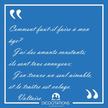 ![Comment faut-il faire à mon âge? J'ai des amants constants; [...] - Voltaire... Comment faut-il faire à mon âge? J'ai des amants constants; [...] - Voltaire...](/imagescitations/Comment_faut-il_faire_a_mon_age_J_ai_des_amants_constants_-_Voltaire-95107.jpg)