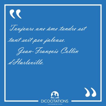 ![Toujours une âme tendre est tant soit peu [...] - Jean-François Collin d'Harleville... Toujours une âme tendre est tant soit peu [...] - Jean-François Collin d'Harleville...](/imagescitations/Toujours_une_ame_tendre_est_tant_soit_peu_-_Jean-Francois_Collin_d_Harleville-95219.jpg)