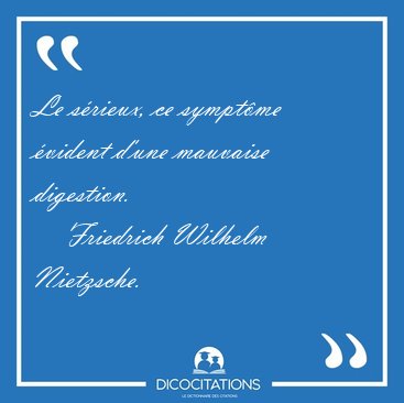 ![Le sérieux, ce symptôme évident d'une mauvaise [...] - Friedrich Wilhelm Nietzsche... Le sérieux, ce symptôme évident d'une mauvaise [...] - Friedrich Wilhelm Nietzsche...](/imagescitations/Le_serieux_ce_symptome_evident_d_une_mauvaise_-_Friedrich_Wilhelm_Nietzsche-9625.jpg)