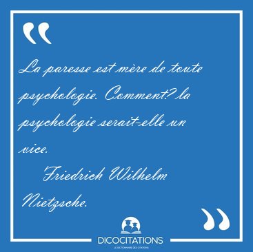 ![La paresse est mère de toute psychologie. Comment? la [...] - Friedrich Wilhelm Nietzsche... La paresse est mère de toute psychologie. Comment? la [...] - Friedrich Wilhelm Nietzsche...](/imagescitations/La_paresse_est_mere_de_toute_psychologie_Comment_la_-_Friedrich_Wilhelm_Nietzsche-96633.jpg)