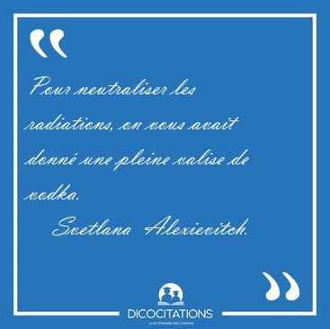 ![Pour neutraliser les radiations, on vous avait donné une pleine [...] - Svetlana Alexievitch... Pour neutraliser les radiations, on vous avait donné une pleine [...] - Svetlana Alexievitch...](/imagescitations/Pour_neutraliser_les_radiations_on_vous_avait_donne_une_pleine_-_Svetlana_Alexievitch-97031.jpg)