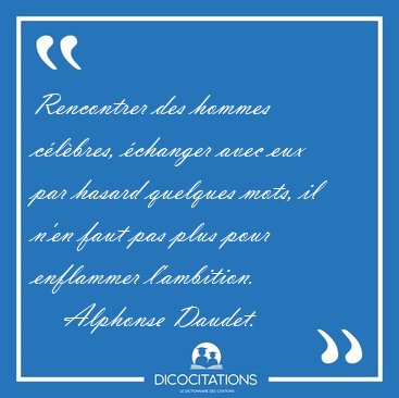 ![Rencontrer des hommes célèbres, échanger avec eux par hasard [...] - Alphonse Daudet... Rencontrer des hommes célèbres, échanger avec eux par hasard [...] - Alphonse Daudet...](/imagescitations/Rencontrer_des_hommes_celebres_echanger_avec_eux_par_hasard_-_Alphonse_Daudet-97859.jpg)