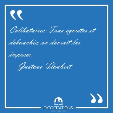 ![Célibataires: Tous égoïstes et débauchés; on devrait les [...] - Gustave Flaubert... Célibataires: Tous égoïstes et débauchés; on devrait les [...] - Gustave Flaubert...](/imagescitations/Celibataires_Tous_egoistes_et_debauches_on_devrait_les_-_Gustave_Flaubert-97875.jpg)