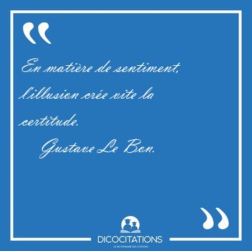 ![En matière de sentiment, l'illusion crée vite la [...] - Gustave Le Bon... En matière de sentiment, l'illusion crée vite la [...] - Gustave Le Bon...](/imagescitations/En_matiere_de_sentiment_l_illusion_cree_vite_la_-_Gustave_Le_Bon-97919.jpg)