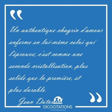 ![Un authentique chagrin d'amour enferme en lui-même celui qui [...] - Jean Dutourd... Un authentique chagrin d'amour enferme en lui-même celui qui [...] - Jean Dutourd...](/imagescitations/Un_authentique_chagrin_d_amour_enferme_en_lui-meme_celui_qui_-_Jean_Dutourd-97939.jpg)