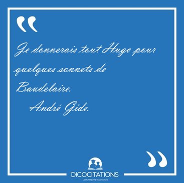 Je donnerais tout Hugo pour quelques sonnets de Baudelaire.