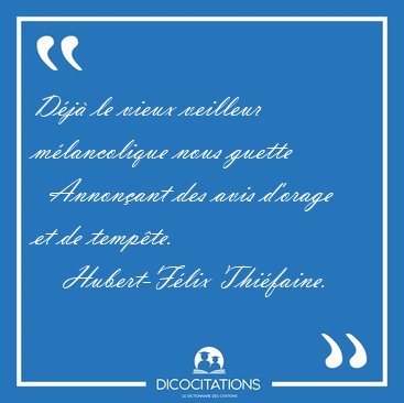 ![Déjà le vieux veilleur mélancolique nous guette Annonçant des [...] - Hubert-Félix Thiéfaine... Déjà le vieux veilleur mélancolique nous guette Annonçant des [...] - Hubert-Félix Thiéfaine...](/imagescitations/Deja_le_vieux_veilleur_melancolique_nous_guette_Annoncant_des_-_Hubert-Felix_Thiefaine-98767.jpg)