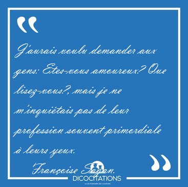 ![J'aurais voulu demander aux gens: Etes-vous amoureux? Que [...] - Françoise Sagan... J'aurais voulu demander aux gens: Etes-vous amoureux? Que [...] - Françoise Sagan...](/imagescitations/J_aurais_voulu_demander_aux_gens_Etes-vous_amoureux_Que_-_Francoise_Sagan-98865.jpg)