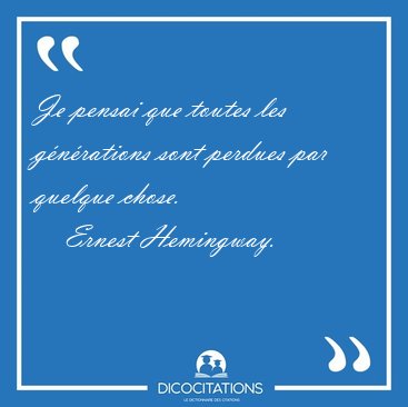 ![Je pensai que toutes les générations sont perdues par quelque [...] - Ernest Hemingway... Je pensai que toutes les générations sont perdues par quelque [...] - Ernest Hemingway...](/imagescitations/Je_pensai_que_toutes_les_generations_sont_perdues_par_quelque_-_Ernest_Hemingway-98904.jpg)