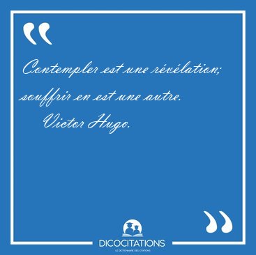 Contempler est une révélation; souffrir en est une autre.