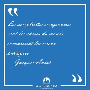 ![Les complicités imaginaires sont les choses du monde inconscient [...] - Jacques André... Les complicités imaginaires sont les choses du monde inconscient [...] - Jacques André...](/imagescitations/Les_complicites_imaginaires_sont_les_choses_du_monde_inconscient_-_Jacques_Andre-99441.jpg)
