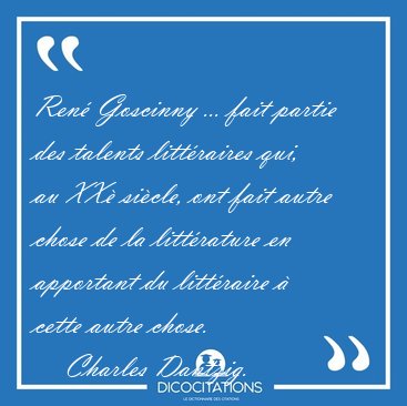René Goscinny ... fait partie des talents littéraires qui, au XXè siècle, ont fait autre chose de la littérature en apportant du littéraire à cette autre chose.